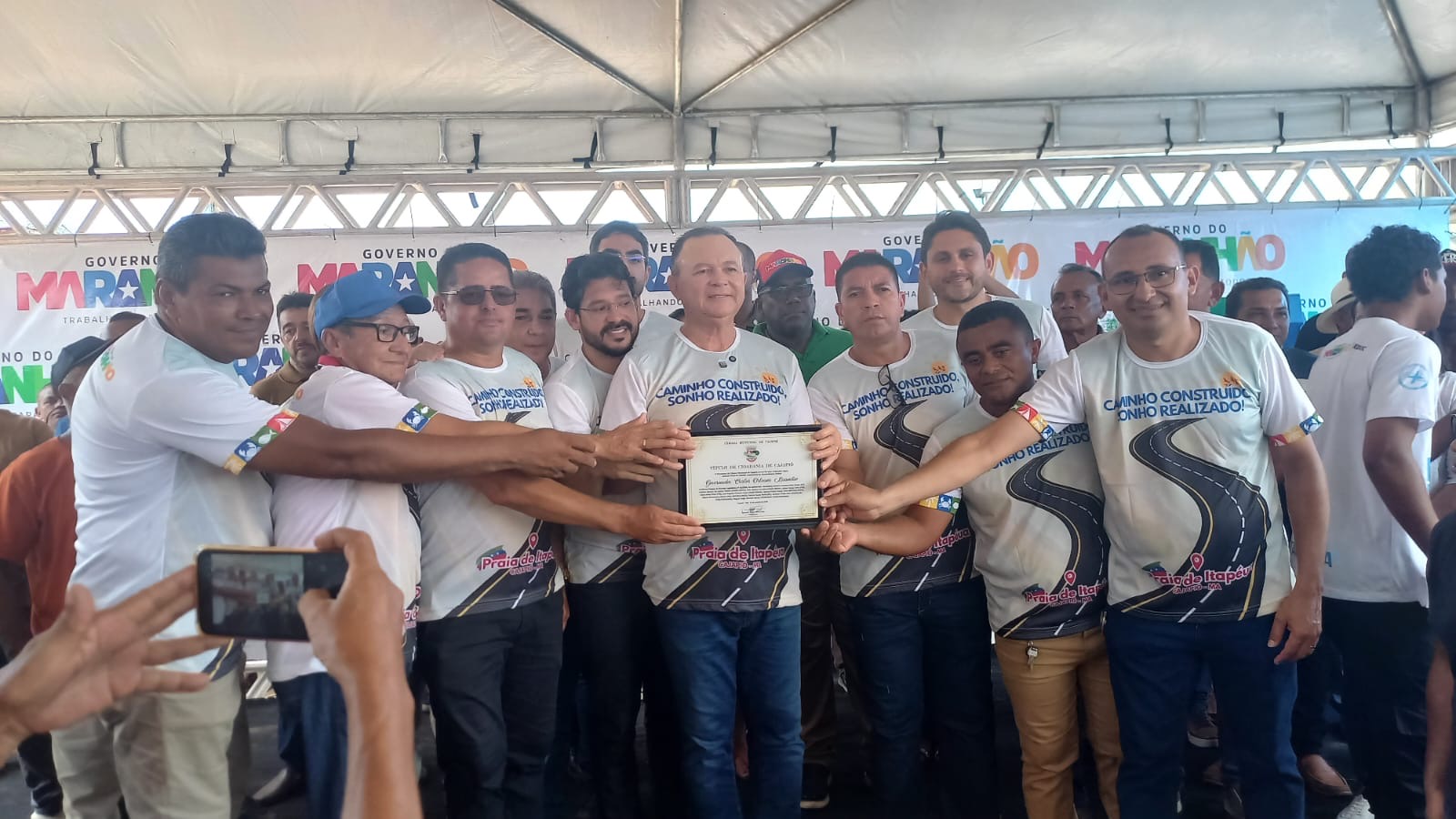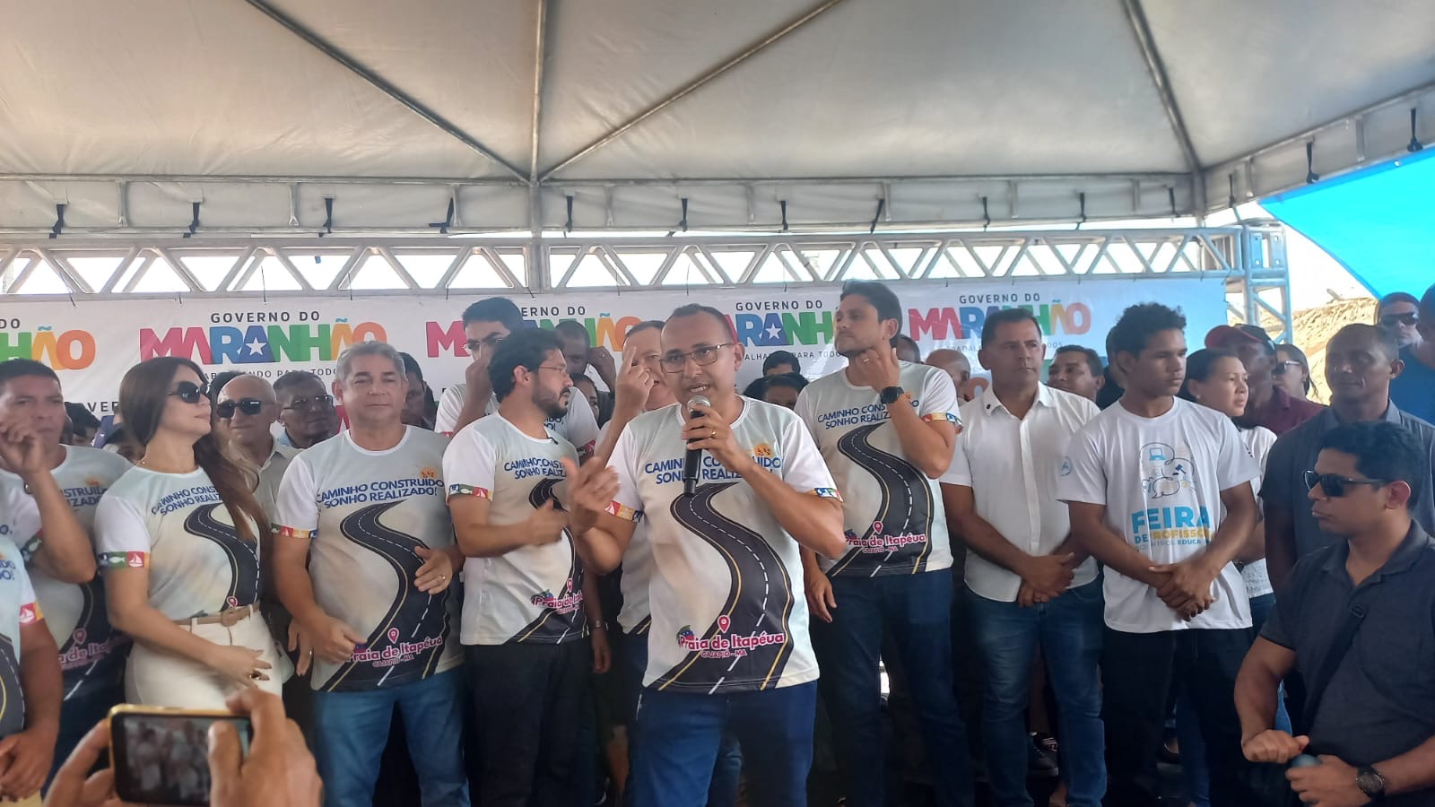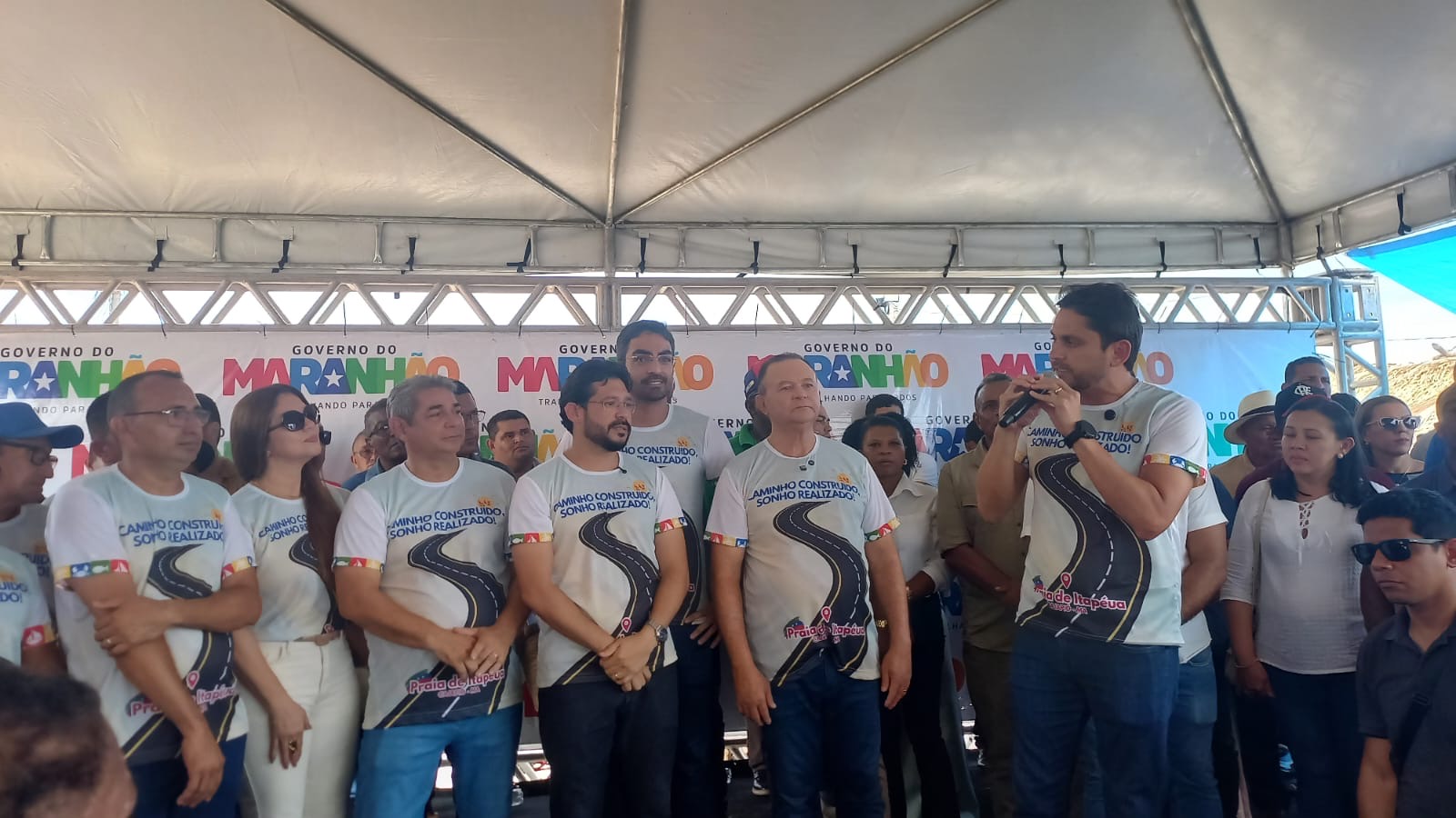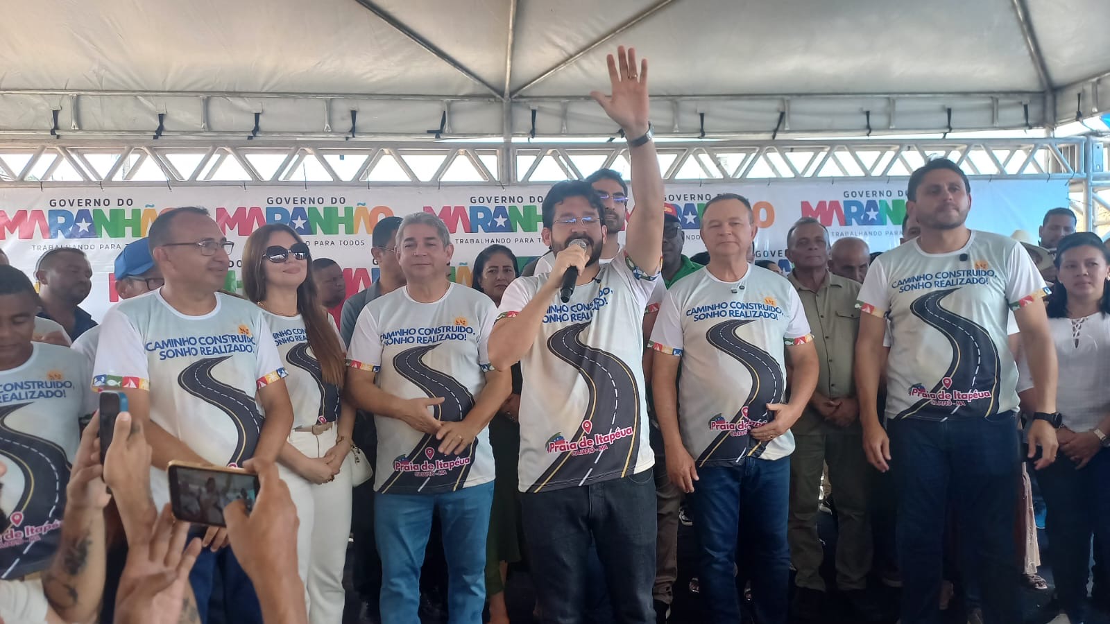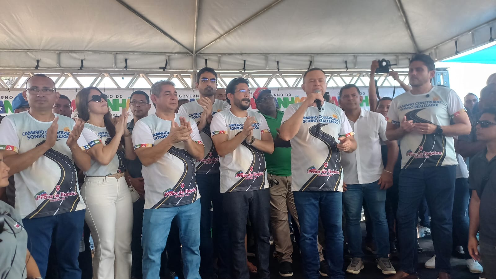 Estava presentes o prefeito Dr.Rômulo Marques, o governador Carlos Brandão, o ex-prefeito de Cajapió e líder político Dr.Marcone Marques, o deputado estadual Florêncio Neto, o deputado federal Juscelino Filho, secretários, vereadores e população.
